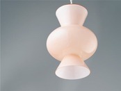 〇と△をつなげた緩急のあるオブジェが浮かんでいるようで、想像が膨らむユニークなデザイン。