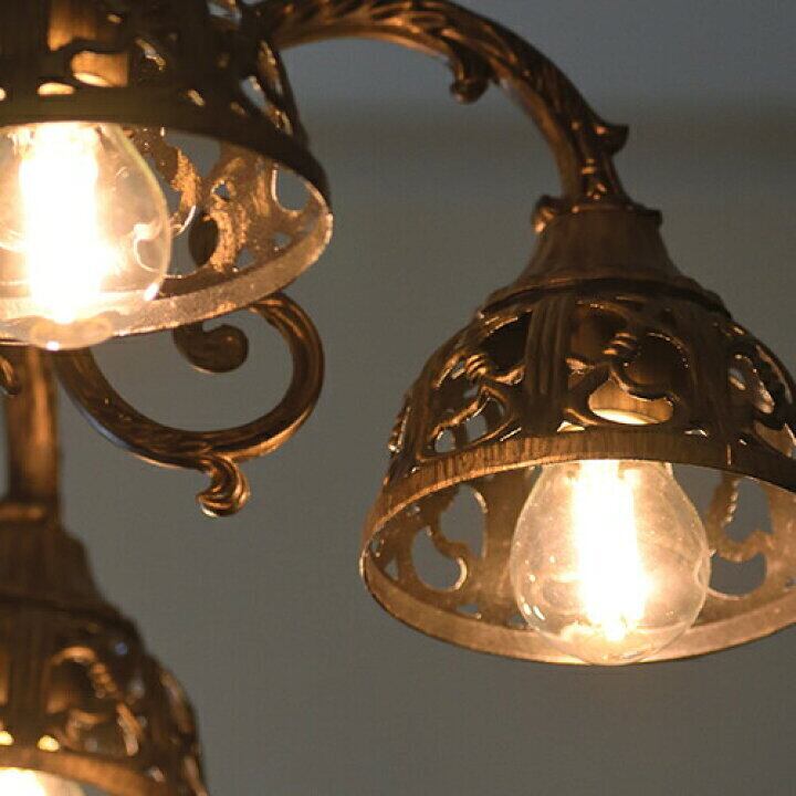 繊細なデザインシェードが魅力の5灯シャンデリア「ジョクジャ」